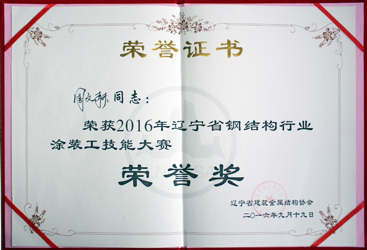 2016年9月19日,由遼寧省建筑金屬結(jié)構(gòu)協(xié)會主辦的遼寧省鋼結(jié)構(gòu)行業(yè)涂裝工技能大賽圓滿落幕。來自全省10家企業(yè)的20名選手參加了最后的決賽。我公司鋼構(gòu)生產(chǎn)部技工肇旭升獲得第二名的好成績,周文赫獲得榮譽(yù)獎。