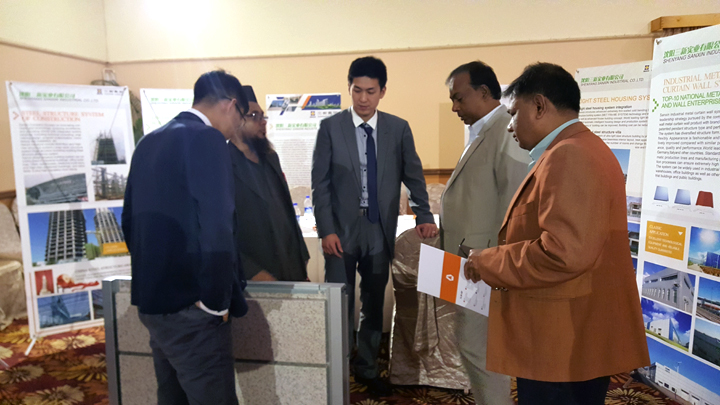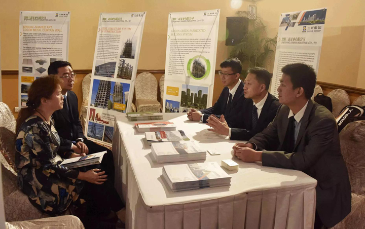 在推介會上,來自中孟的近70位企業(yè)代表就孟加拉國市場拓展、企業(yè)產(chǎn)品和項目合作進行了面對面的交流對接,涉及基建、能源、電力等領域。會議期間,三新集團展位受到廣泛關注。獨具特色的公共建筑、民用建筑及工業(yè)建筑產(chǎn)品吸引了眾多孟加拉國客戶及廠商,并進行了咨詢及多場洽談會晤,簽訂了多項合作及銷售協(xié)議。同時,公司還與中國電建、中國能建、中國石油、中國東北電力第三工程有限公司、中成進出口股份有限公司等國內(nèi)知名廠商進行了合作洽談,強強聯(lián)合,共同助力開拓孟加拉市場。
