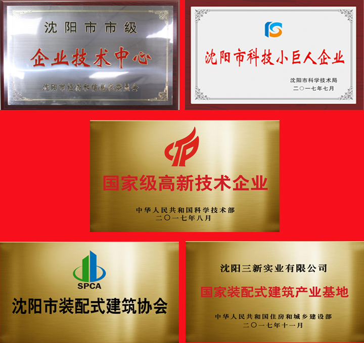 春華秋實(shí),2017年是三新集團(tuán)豐收的一年,借力國(guó)家創(chuàng)新戰(zhàn)略的成功實(shí)施,集團(tuán)業(yè)務(wù)長(zhǎng)足發(fā)展,實(shí)力與日俱增。集團(tuán)相繼獲得國(guó)家科技部授予的“高新技術(shù)企業(yè)”、沈陽(yáng)市高新技術(shù)和科技小巨人“雙培育”企業(yè)、“國(guó)家裝配式建筑產(chǎn)業(yè)基地”和“全國(guó)科技低碳鋼結(jié)構(gòu)產(chǎn)業(yè)示范基地”、沈陽(yáng)市“重合同守信譽(yù)”單位。三新集團(tuán)的技術(shù)研發(fā)中心被評(píng)為市級(jí)企業(yè)技術(shù)中心。三新集團(tuán)產(chǎn)品被列入《遼寧省重點(diǎn)推廣應(yīng)用工業(yè)產(chǎn)品目錄(2017年版)》、沈陽(yáng)市重點(diǎn)工業(yè)優(yōu)質(zhì)產(chǎn)品名錄。