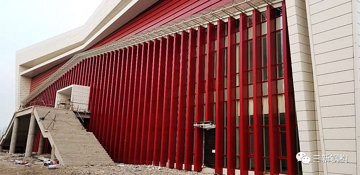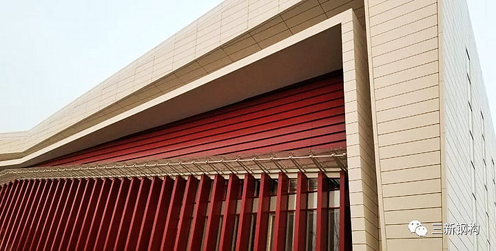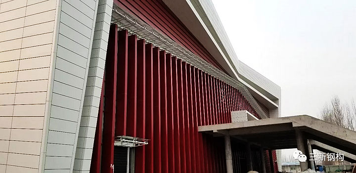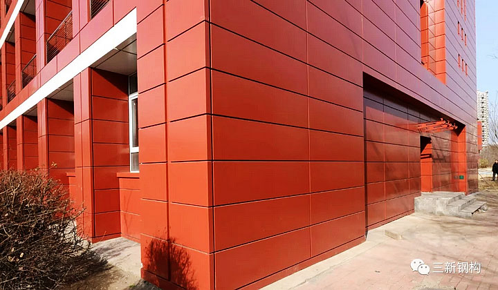 2、項(xiàng)目采用開放式金屬幕墻系統(tǒng),凹槽、洞口、窗口、弧形造型、傾斜面折線、波紋造型的方案設(shè)計(jì),金屬板采用磚紅色金屬板,生產(chǎn)后直接發(fā)運(yùn)至現(xiàn)場(chǎng)安裝,金屬板顏色種類豐富且減少噴涂過(guò)程,縮短生產(chǎn)工期;