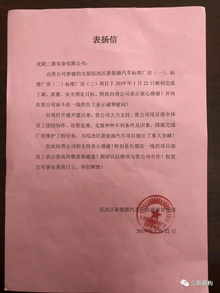 項目經(jīng)理邢玉寶代表工程項目部作太原項目總結(jié)報告。2018年,在公司上下鼎力支持下,工程項目部發(fā)揚打硬仗能吃苦的精神,克服任務(wù)重、工期緊、要求高等困難,圓滿高質(zhì)量按工期完成任務(wù),在工程施工技術(shù)管理方面取得可喜的進步和成績,受到山西綜改區(qū)新能源汽車項目管理部的好評,并致感謝信。