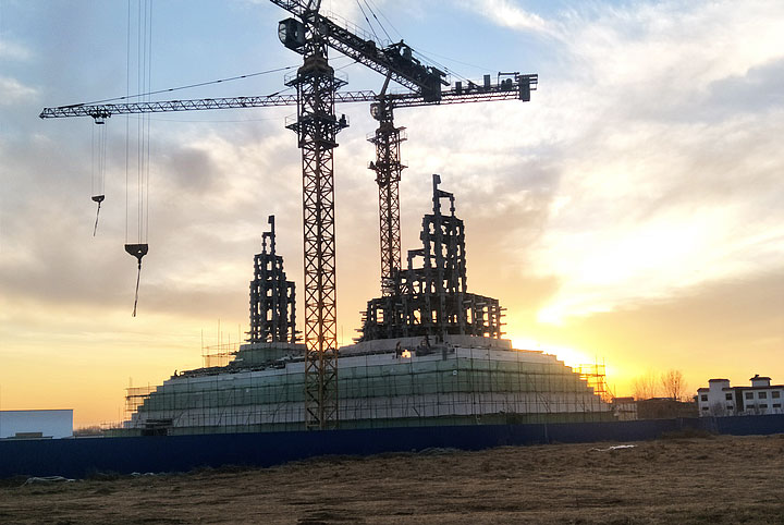 黃帝問道大項目是“帝師之鄉(xiāng)”汝州的重點大型城雕項目,也是當(dāng)?shù)氐貥?biāo)性建筑。該項目肩負(fù)著弘揚(yáng)汝州歷史文化和華夏文明的重任,承載了太多榮耀和希冀。雕像基底面積1400平方米,人像總高度59.8米,主體結(jié)構(gòu)采用圓管鋼框架,外側(cè)采用干掛石材雕塑,總用鋼量2300噸,設(shè)計使用年限為100年。雕塑內(nèi)部水、電、消防配套齊全。要用鋼結(jié)構(gòu)、石塑傳神地塑造中華民族敬為人皇的黃帝雕像,不失神韻和靈氣,其難度可想而知。三新不負(fù)重托,攻克所有的技術(shù)難題,把大師畫卷中的意象用建筑語言完美呈現(xiàn),體現(xiàn)了三新建筑技術(shù)與藝術(shù)完美融合的建筑理念。施工過程中汝州市政府各級領(lǐng)導(dǎo)多次到現(xiàn)場檢查指導(dǎo),對工程質(zhì)量贊賞有加。我們一起見證了精品的煉成,其中凝聚了三新人的心血和智慧,更體現(xiàn)了三新的創(chuàng)新精神。如今被評為“中國鋼結(jié)構(gòu)金獎”工程,更是實至名歸。三新帶您一睹黃帝風(fēng)采,領(lǐng)略華夏文明。