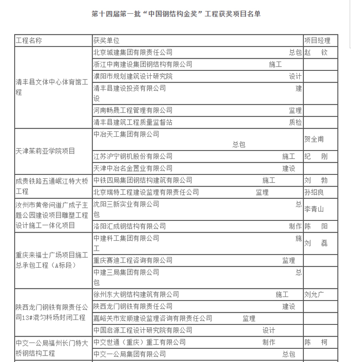 會上,經(jīng)過由23位資深鋼結(jié)構(gòu)專家專家組成的評審委員會嚴(yán)格遵循公平、公正、公開的原則,對各項申報工程進(jìn)行細(xì)致而周密的綜合評議和投票,最終產(chǎn)生了第十四屆第一批(2019年度)中國鋼結(jié)構(gòu)金獎工程。 我公司黃帝問道大型城雕項目名列其中,并將在2021年全國建筑鋼結(jié)構(gòu)行業(yè)大會一起進(jìn)行表彰。