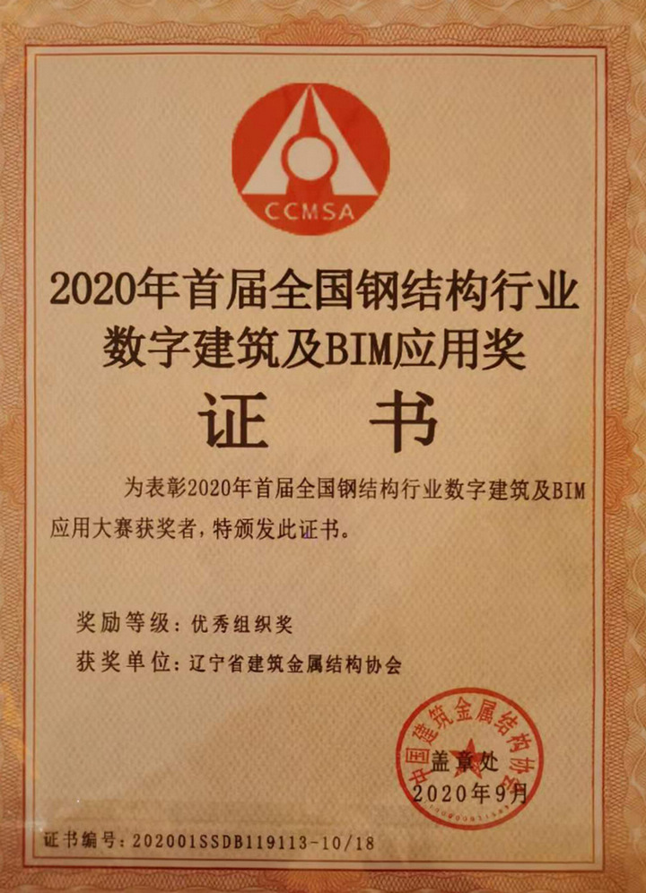 大會(huì)對(duì)2019年度行業(yè)貢獻(xiàn)突出企業(yè)進(jìn)行了表彰。我公司獲頒“金屬屋墻面行業(yè)競(jìng)爭(zhēng)力前十名企業(yè)”、“2019年度建筑鋼結(jié)構(gòu)行業(yè)50強(qiáng)企業(yè)”、“中國(guó)建筑鋼結(jié)構(gòu)行業(yè)2019年度誠(chéng)信企業(yè)”稱號(hào)。公司BIM 團(tuán)隊(duì)榮獲“2020年度首屆全國(guó)鋼結(jié)構(gòu)行業(yè)數(shù)字建筑及BIM應(yīng)用大賽優(yōu)秀獎(jiǎng)”,李青山榮獲“2019年度全國(guó)鋼結(jié)構(gòu)工程優(yōu)秀建造師”,張毅在“集成房屋行業(yè)抗疫感人事跡”公益活動(dòng)中表現(xiàn)突出,被評(píng)為“最美逆行者”。