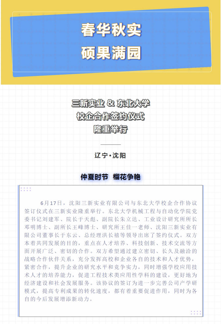 春華秋實,碩果滿園——三新實業(yè)與東北大學(xué)簽訂校企合作協(xié)議