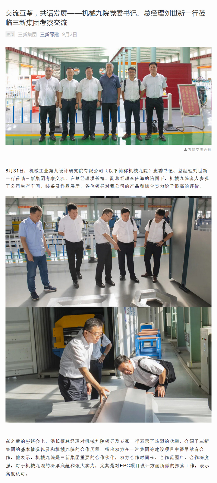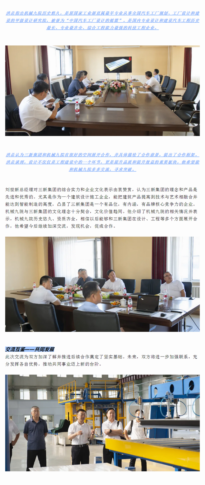 交流互鑒,共話發(fā)展——機械九院黨委書記、總經(jīng)理劉世新一行蒞臨三新集團考察交流