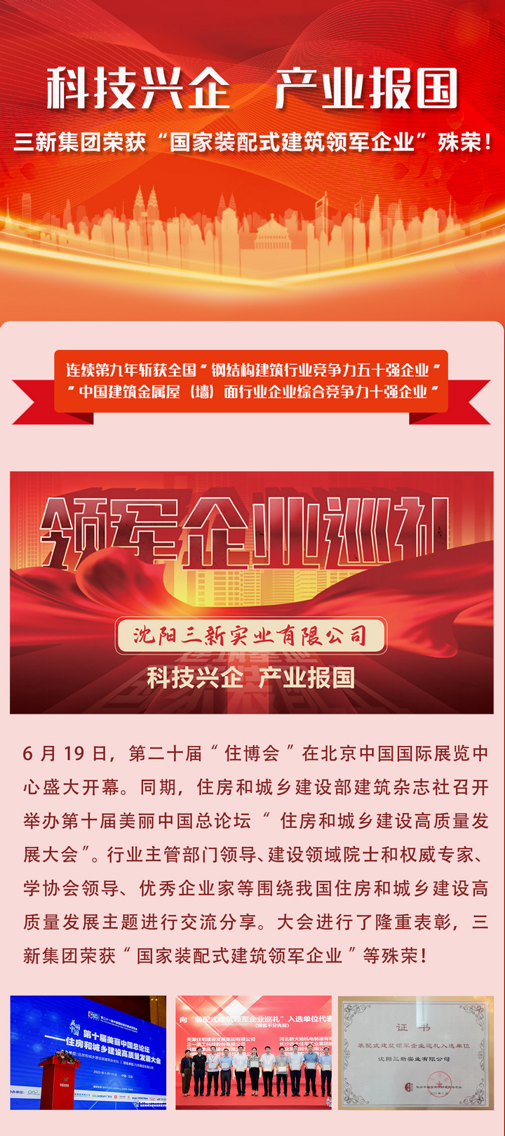 科技興企,產(chǎn)業(yè)報國——三新集團榮獲“國家裝配式建筑領(lǐng)軍企業(yè)”殊榮!